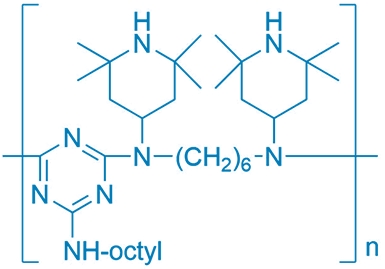聚-{[6-[(1,1,3,3-四甲基丁基)-亚氨基]-1,3,5-三嗪-2,4-二基] [2-(2,2,6,6-四甲基哌啶基)-氨基]-亚 己基-[4-(2,2,6,6-四甲基哌啶基)-亚氨基]}耐抽提性能好,特别适用于薄制品,如纤维与薄膜;还可提升材料的抗热氧老化性能。吸入有极高毒性, 刺激眼睛和呼吸系统。